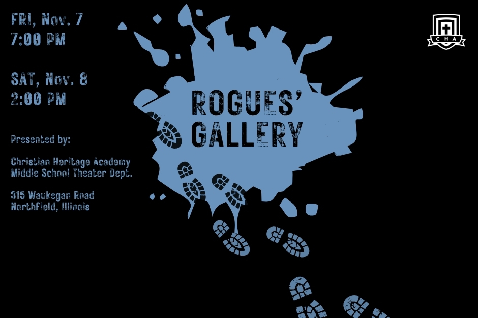 Our Middle School Theater program will present the comedy mystery Rogues' Gallery on Friday, November 7, at 7:00 PM and Saturday, November 8, at 2:00 PM.