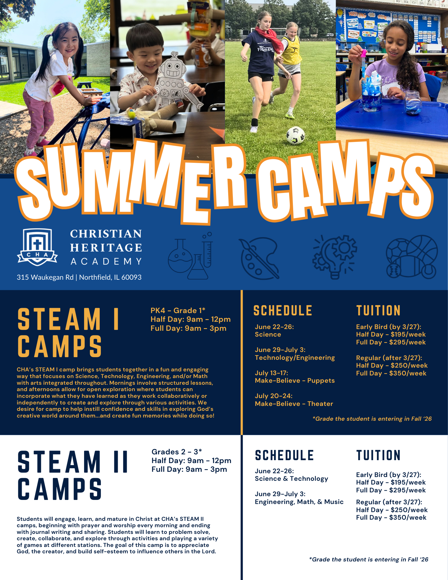 Get ready for CHA's Summer Camps 2026! Check out the variety of camps along with the schedule and rates below. The early bird rates will be good through March 27, but register early so you secure one of the limited seats.