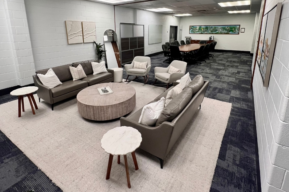 The Loft is a cozy, contemporary second-floor event space (2740 square feet) adjacent to the Auditorium, good for groups up to 100. The Loft features a speaking/performance stage complete with audio and video technology, as well as a casual gathering and activity space with booth-style seating options, a ping-pong table, and refreshments area.